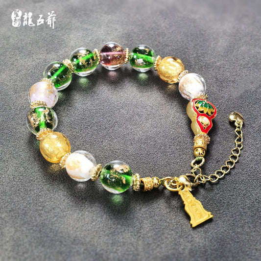 May blessings and wisdom endure forever (Gold foil glass gourd bracelet)